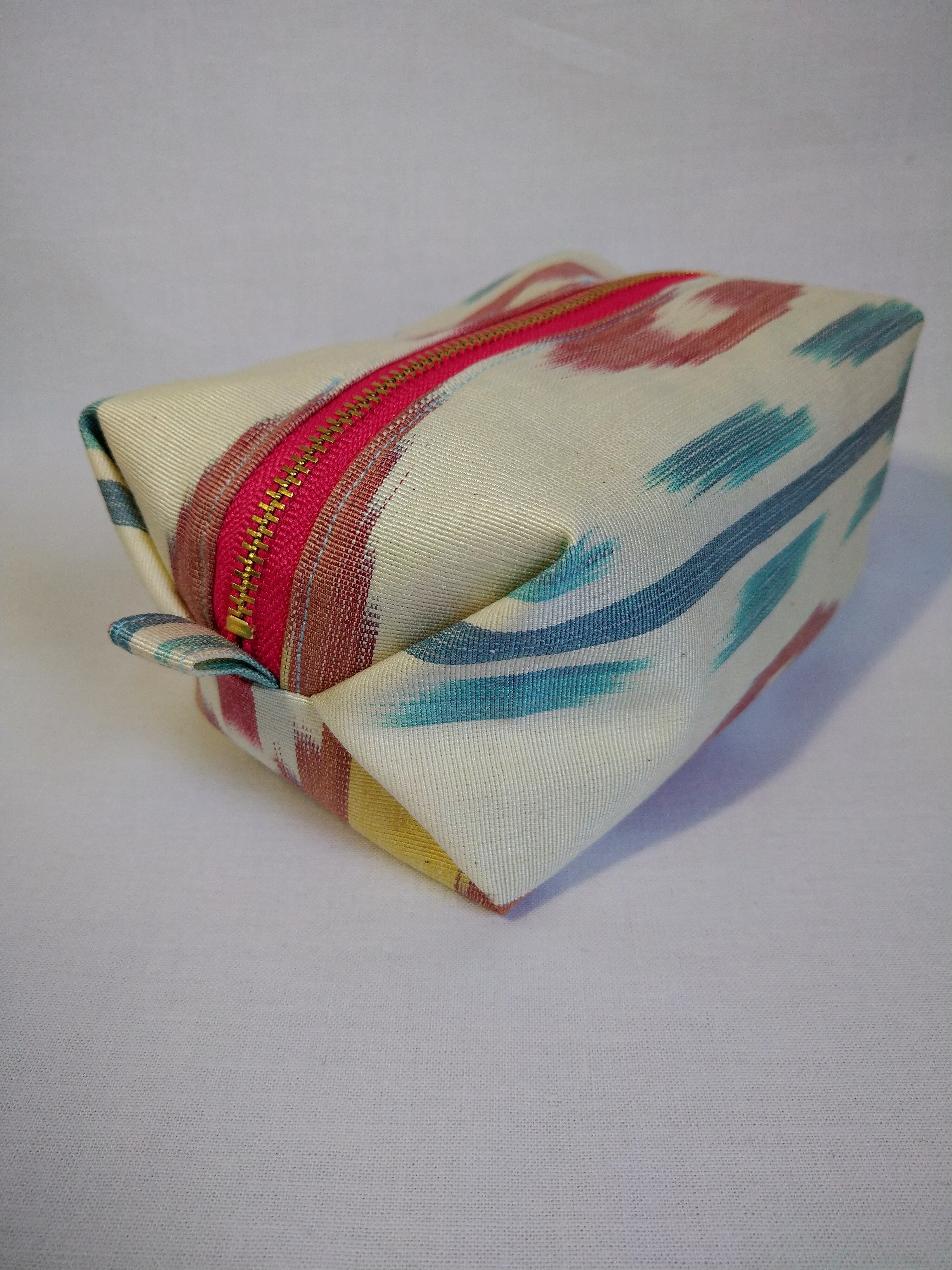ウズベキスタンの伝統絹織物を使用し、ぷっくりかわいいポーチを作りました。
