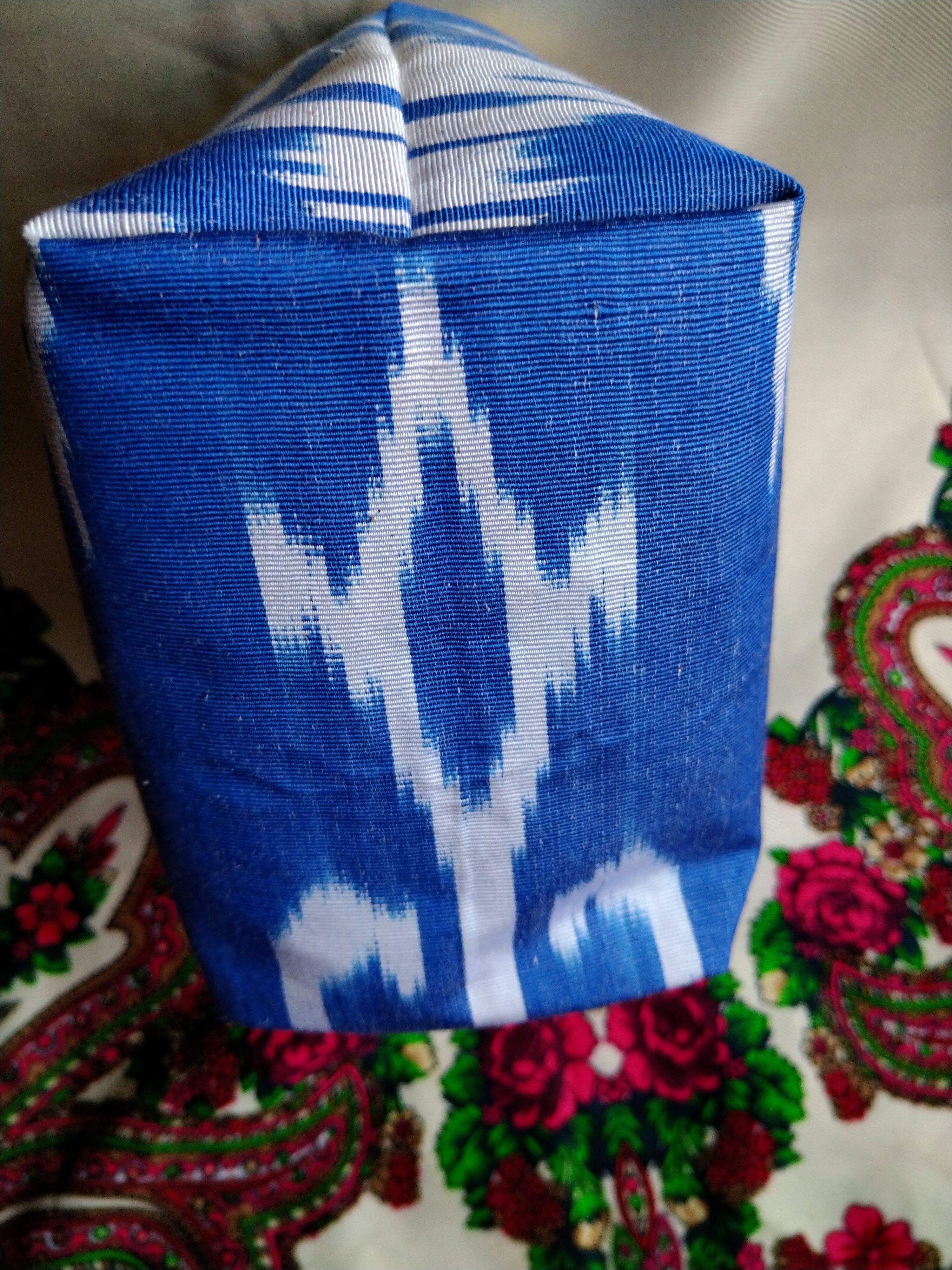 ウズベキスタンの伝統絹織物アドラスでポーチを作りました。中はレモン模様。大容量です☆